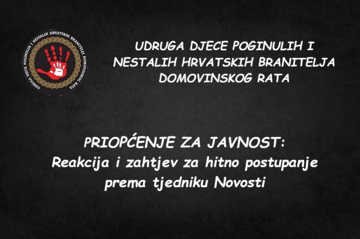Udruga djece poginulih i nestalih hrvatskih branitelja Domovinskog rata uputila je dana 28. studenoga 2025.