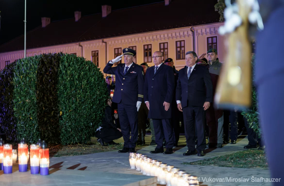 U središtu Vukovara, ispred zgrade nekadašnje Policijske uprave Vukovar – mjesta s kojega je te ratne 1991. godine u obranu Vukovara krenulo 97 policijskih službenika iz Policijske uprave Vukovar, Antiterorističke jedinice Lučko, Specijalne jedinice policije Vinkovci, Specijalne jedinice policije Slavonski Brod te policijskih uprava Međimurske i Varaždinske – održan je središnji dio komemoracije.