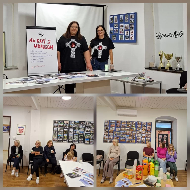 Javna aktivnost „Na kavi s udrugom“ organizirana je u sklopu aktivnosti Nacionalne sustavne podrške čija korisnica je nacionalna UDPNHBDR uz financijsku podršku Nacionalne zaklade za razvoj civilnoga društva. Partneri na aktivnosti bili su UDPNHBDR – Podružnica Splitsko-dalmatinske županije te Udruga roditelja i udovica poginulih branitelja Domovinskog rata grada Sinja i Cetinske krajine. U ime partnera sve okupljene je pozdravila Dragica Hrgović, predsjednica URUPBDR-a Sinj dok je Sandra Budimir prezentirala aktivnosti njihove udruge s posebnim naglaskom na UZV preglede dojki koje trenutno provode putem projekata, a u sklopu kojih se godišnje pregleda oko 100 žena.