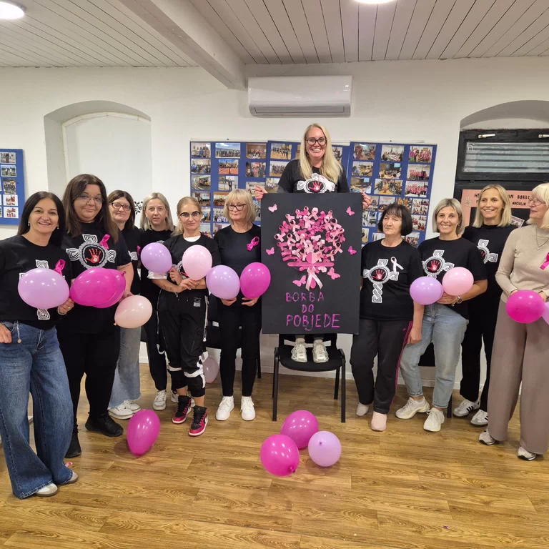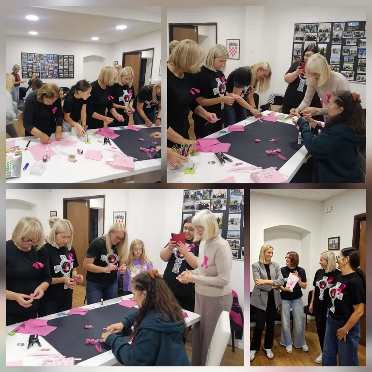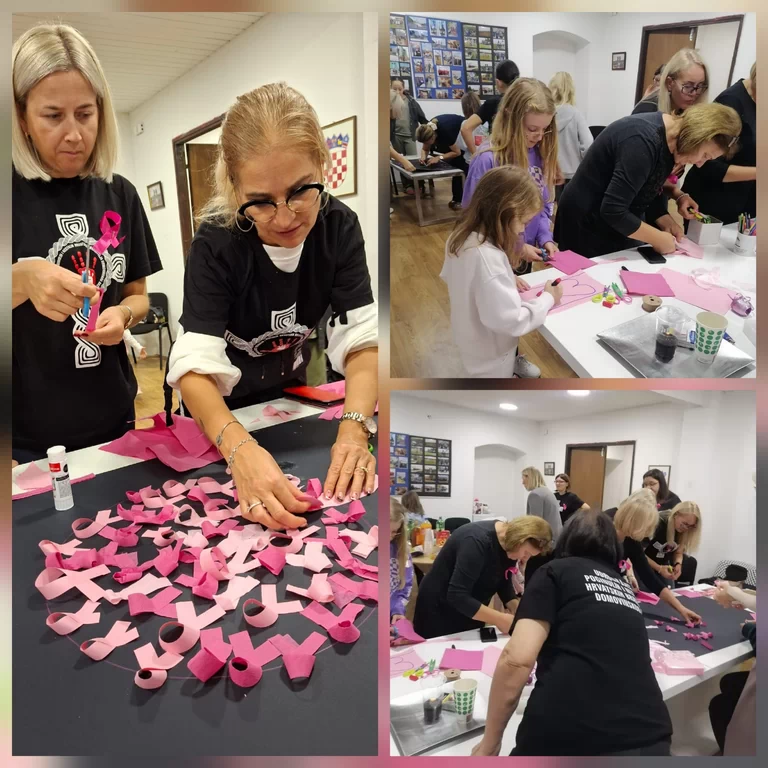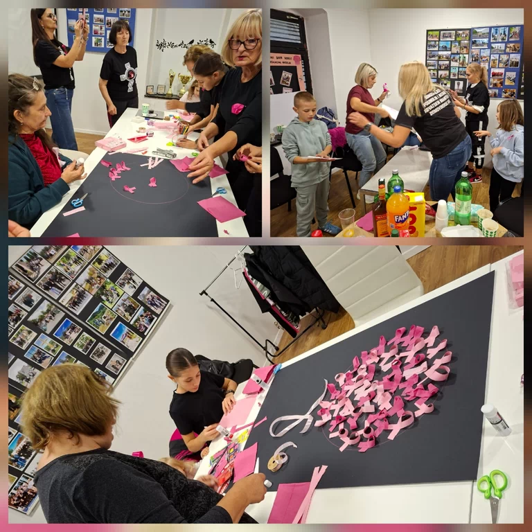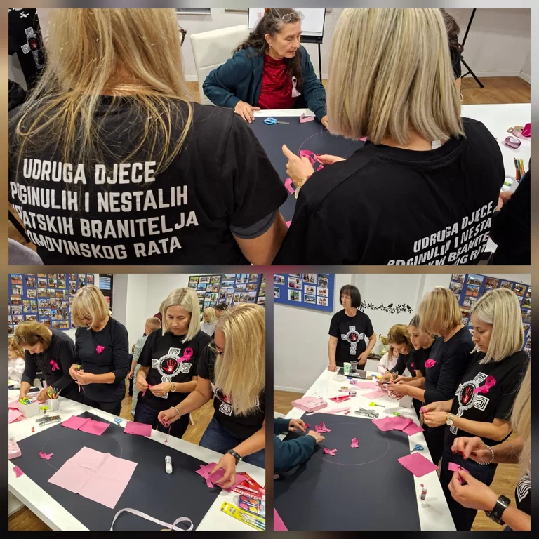 Druga partnerska organizacija, UDPNHBDR-SDŽ za okupljene je pripremila likovno-kreativnu radionicu „Listopad – mjesec borbe protiv raka dojke“ kojom se posebna pažnja skreće na važnost rane prevencije, redovitih pregleda i samo-pregleda. Okupljenima su predstavnice URUPBDR-a Sinj podijelile informativne brošure o samo-pregledu, a volonteri UDPNHBDR-SDŽ su potom prezentirali tehnike i motiv likovne radionice u sklopu koje su djeca izrađivala plakat prilagođen njihovom uzrastu s otiscima ruku i ružičastom vrpcom kao simbolom obilježavanja dok su stariji sudionici izradili drugi plakat i vrpce koje su nosili za cijelo vrijeme trajanja aktivnosti.