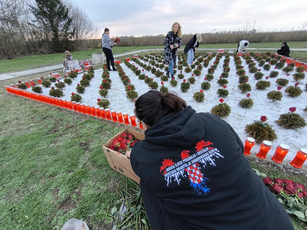 Članovi Udruge potom su počistili te uredili Trg žrtava Ovčare u Vukovaru gdje su također zapalili lampione te postavili dva buketa od 50 crvenih ruža kako bi i na tom mjestu odali počast nevinim žrtvama Ovčare.