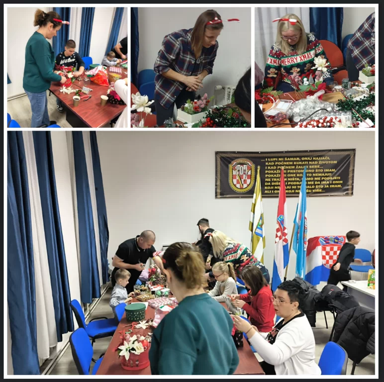 U subotu, 20. prosinca 2025. godine u velikoj sali Doma hrvatskih branitelja u Vukovaru održana je tematska likovno – kreativna božićna radionica na kojoj su sudionici iste izrađivali razne božićne dekoracije – božićne ukrasne kutije, vijence za vrata i stol, drvca od raznih materijala i primjenjujući razne tehnike. Mlađi sudionici ukrašavali božićne slike po zadanom predlošku. To je još jedna u nizu likovno – kreativnih radionica kojima kroz stvaranje likovnih i kreativnih uradaka nastojimo poboljšati psihološko stanje članova obitelji poginulih, smrtno stradalih, nestalih i umrlih hrvatskih branitelja, članova obitelji hrvatskih branitelja te svih drugih zainteresiranih sudionika, a što direktno utječe na poboljšanje njihove socijalne uključenosti kroz interakciju i druženje s drugim osobama.