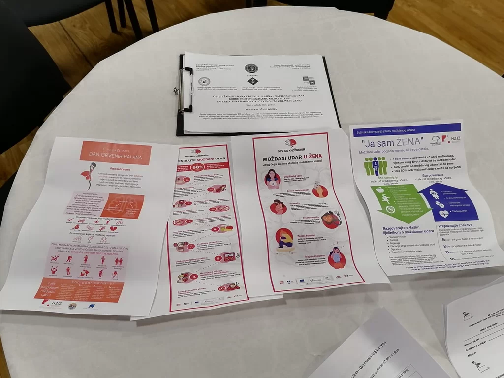 Ovogodišnja kampanja imala je naglasak na djecu s ciljem ugradnje spoznaja o važnosti zdravih životnih navika i edukaciji kako pomoći članu obitelji kod kojeg se razvije moždani udar. Sudionici su u javnozdravstvenu akciju uvedeni prigodnom temom “Moždani udar kod žene“ koju je pripremila Mira Talaja, magistra sestrinstva iz HUMSTIDZRDR. Interaktivnu radionicu „Crvena – za zdravlje žena“ pripremile su i odradile učenice Ambasadori Domovinskog rata uz Helenu Balajić, voditeljicu projekta i Andeu Klišanin, magistru sestrinstva, mentoricu. Sudionicima su mjerene vrijednosti krvnog tlaka i glukoze u krvi te su se anamnestički procjenjivani ostali čimbenici rizika. Dobivene vrijednosti mjerenih parametara analizirale su, objašnjavale i davale daljnje smjernice medicinske sestre. Bili su dostupni i edukativni materijali koje su pripremili učenici s mentoricom.