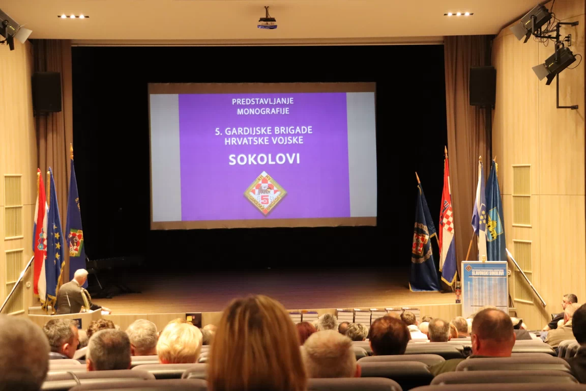 U Domu kulture u Novoj Gradiški 24. ožujka 2026. godine održano je predstavljanje Monografije 5. gardijske brigade “Sokolovi”, uz protokolaran i dostojanstven uvod. Na samom početku okupljenima su upućeni pozdravi, prije svega obiteljima poginulih, smrtno stradalih, nestalih i preminulih hrvatskih branitelja, kao i svim sudionicima Domovinskog rata, ratnim vojnim invalidima te pripadnicima slavne brigade i drugih postrojbi Hrvatske vojske i policije. Okupljenima se obratio voditelj programa, Marko Derežanin, istaknuvši važnost trenutka i simboliku mjesta održavanja – grada koji je bio dom brojnih pripadnika brigade, posebice bivših pripadnika 4. bojne te 80. gardijske bojne Nova Gradiška, koja je kasnije ušla u njezin sastav. Uz riječi dobrodošlice, uslijedilo je izvođenje himne Republike Hrvatske te minuta šutnje kojom je odana počast svim poginulim, nestalim i preminulim hrvatskim braniteljima, kao i prvom hrvatskom predsjedniku dr. Franji Tuđmanu. Posebno je naglašena žrtva 89 pripadnika brigade koji su položili živote za slobodu države.